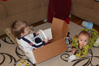 Noah jumped in this box and pretended to 'drivvve!' in his race car jammies, so I gave him the Wii steering wheel controller to help him play. :)